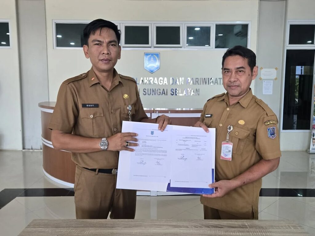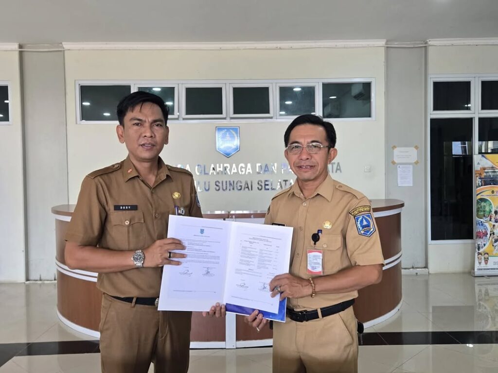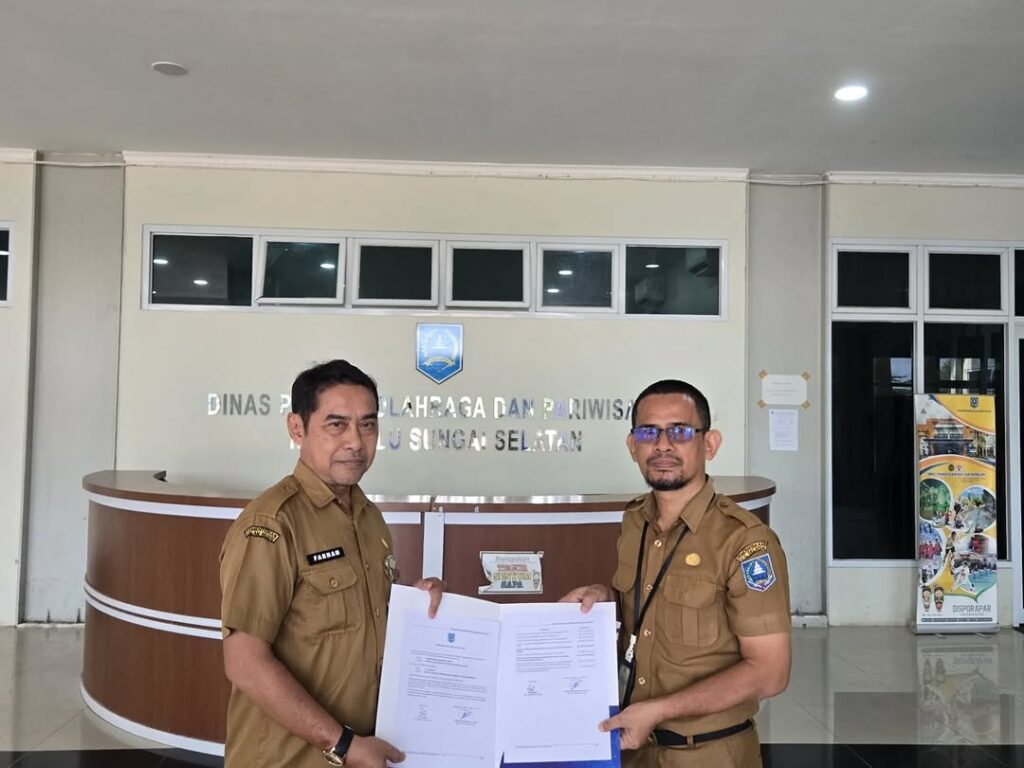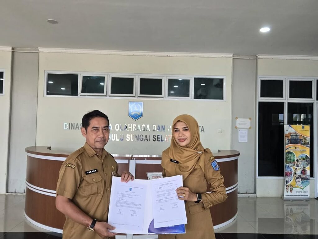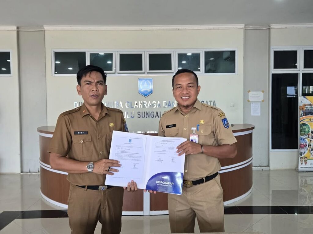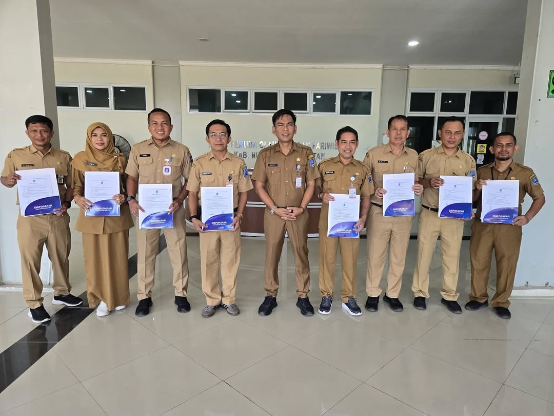 Penandatanganan Perjanjian Kerja di lingkungan Dinas Kepemudaan, Olahraga, dan Pariwisata (Disporapar) Kabupaten Hulu Sungai Selatan (HSS) merupakan bentuk komitmen bersama antara instansi dan pegawai dalam menjalankan tugas dan tanggung jawab sesuai ketentuan yang berlaku. Kegiatan ini bertujuan untuk memperjelas hak dan kewajiban para pihak, meningkatkan profesionalisme, serta mendukung terciptanya kinerja yang efektif, transparan, dan akuntabel. Melalui perjanjian kerja tersebut, diharapkan seluruh pegawai dapat melaksanakan tugas secara optimal dalam mendukung pembangunan di bidang kepemudaan, olahraga, dan pariwisata di Kabupaten Hulu Sungai Selatan.